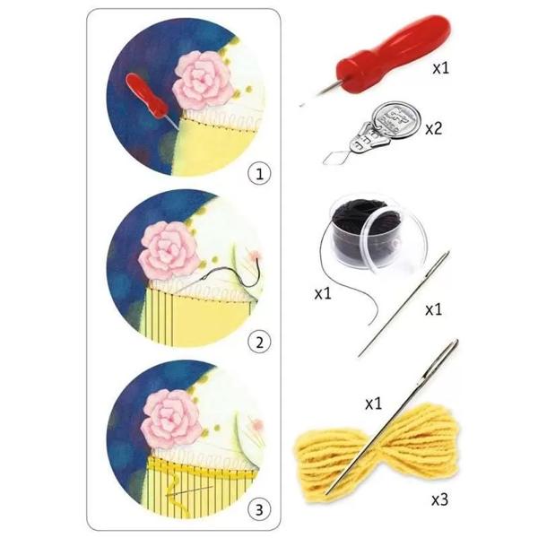 La boite contient tout le nécessaire pour tisser et un modèle facile à suivre. Une super activité pour les bricoleuses et bricoleurs en herbe.